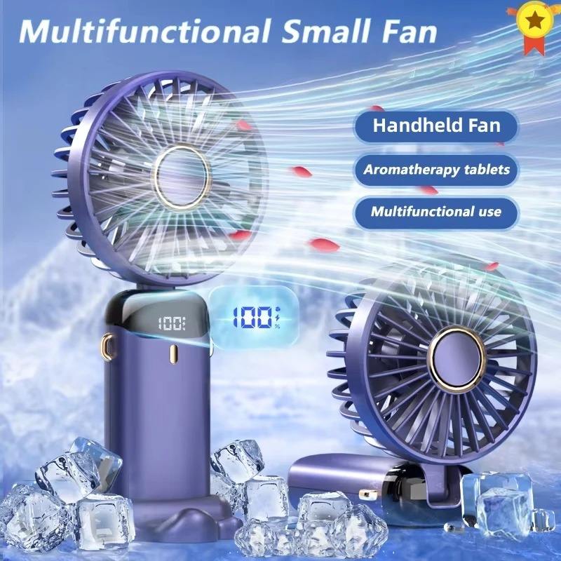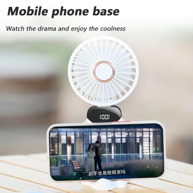 Nuevo Ventilador Portátil de Mano, Multifuncional, Plegable, de Doble Cabezal, Pequeño, Eléctrico, con Correa para el Cuello, para Oficina y Escritorio