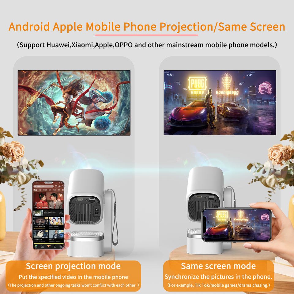 Nuevo Proyector de Cine en Casa Portátil Inteligente Android 13 LED 5000 Lúmenes 1080P con Enfoque Automático, Diseño con Correa de Transporte y BT5.0