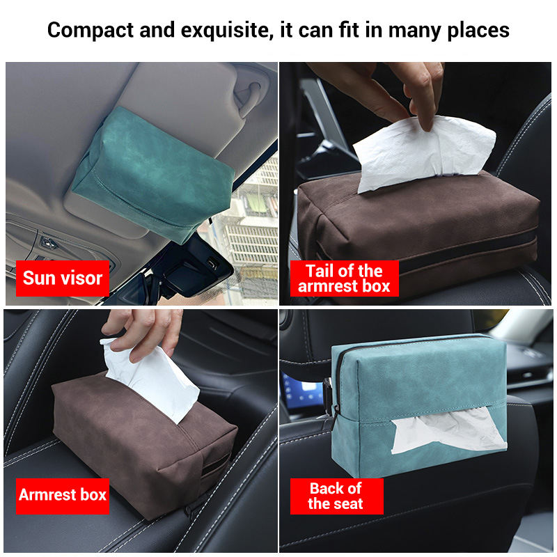 Nueva caja de pañuelos portátil de gamuza para coche, bolsa de almacenamiento de pañuelos colgante Universal, organizador lateral de asiento con succión para coches