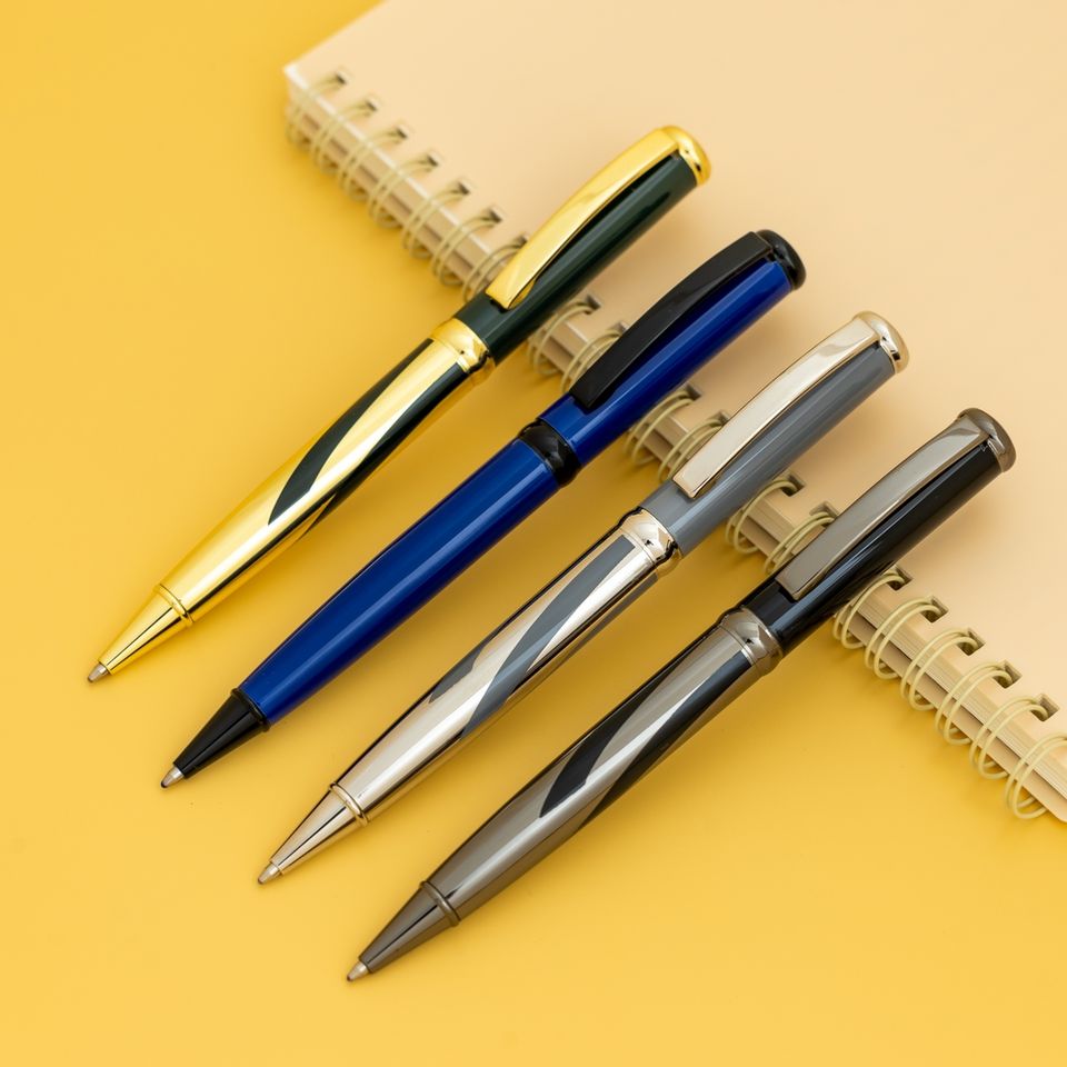 Nuevo bolígrafo de regalo de metal a rayas de dos tonos de escritura suave de lujo Premium con logotipo personalizable