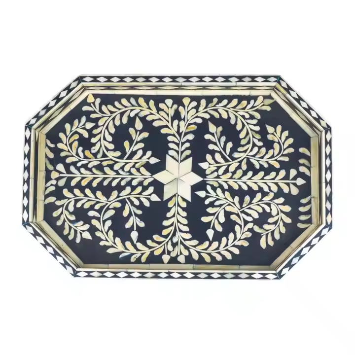 Nuevas bandejas Premium Bandeja de servicio con incrustaciones de hueso puro Mesa de comedor Bandeja de servicio decorativa para el hogar Hotel y restaurante Suministros calientes