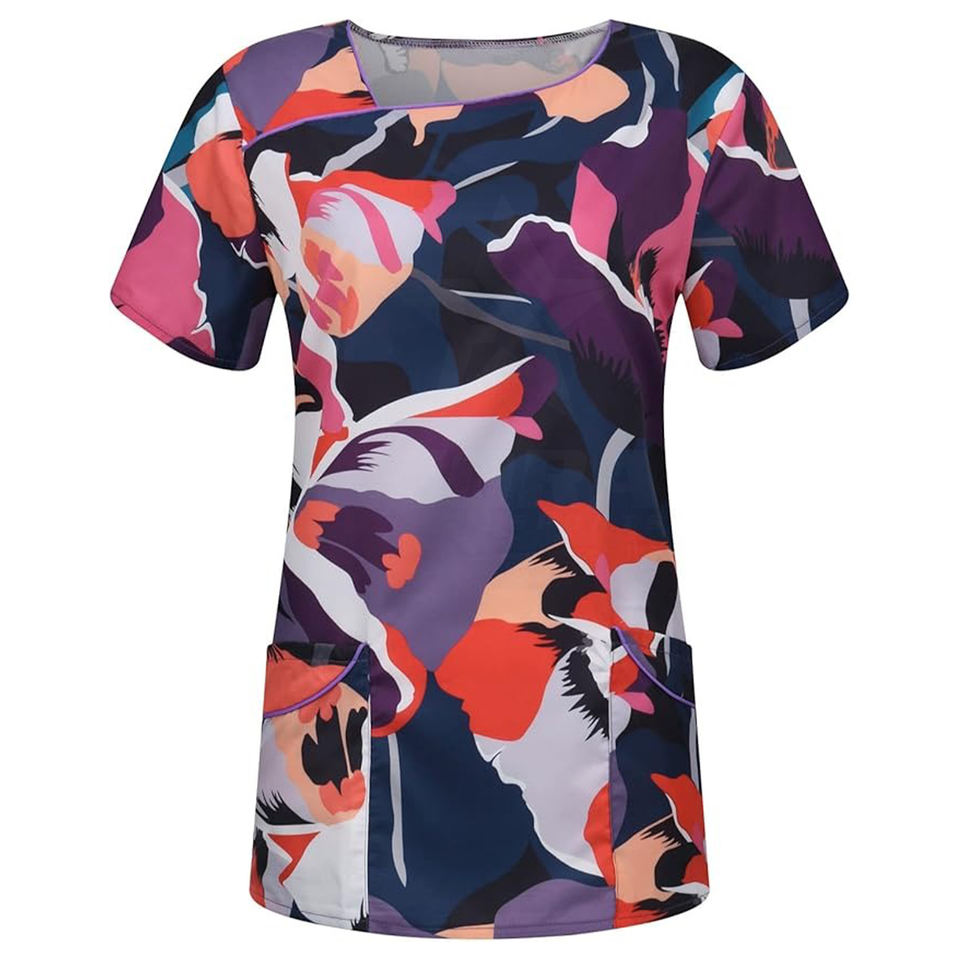 Nuevo traje de fregado de manga corta con estampado, conjunto de fregado superior de Color sólido, uniforme de enfermera, ropa de trabajo de clínica de Hospital, conjunto de dos piezas