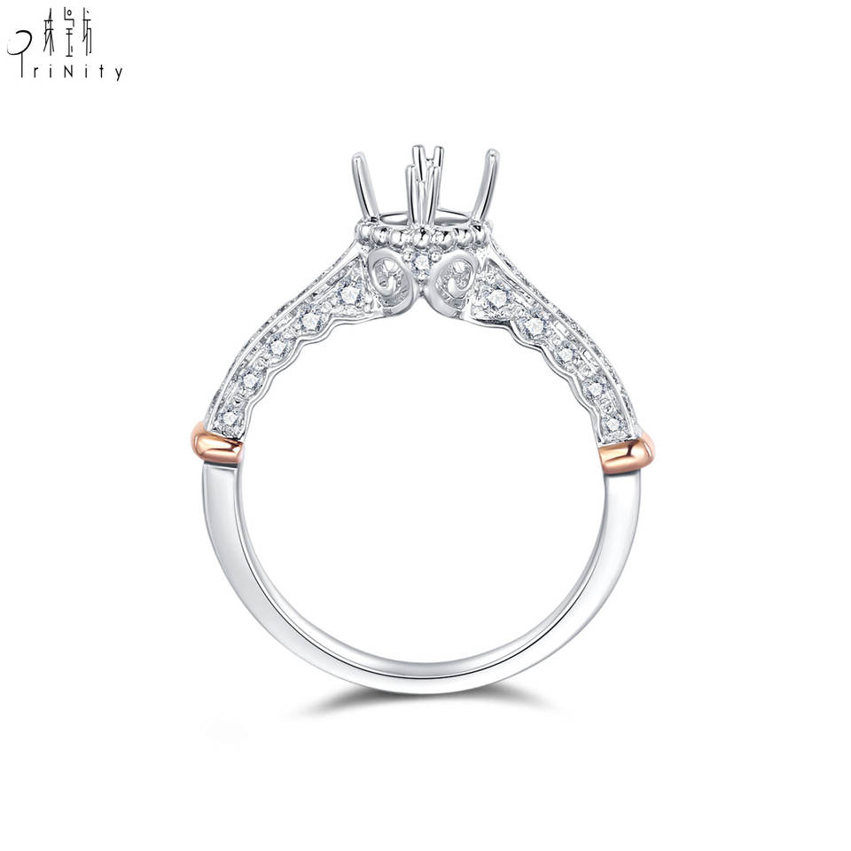 Nuevo producto Diseño clásico 18K Oro blanco sólido Semi Anillo de montaje sin la piedra principal Diamante brillante real para regalo de mujer