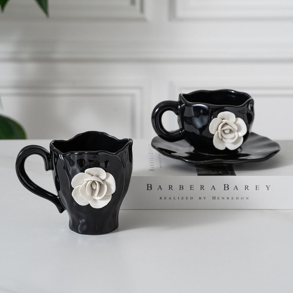 Nombre del producto:Taza de café de cerámica con flores hechas a mano, nuevo producto