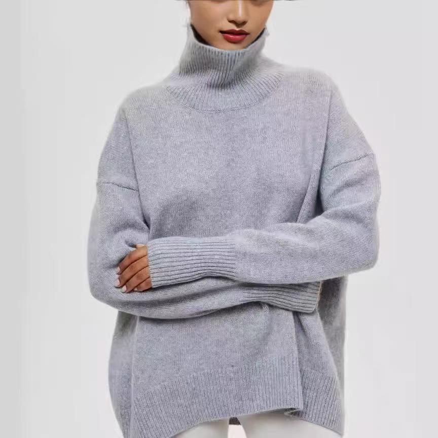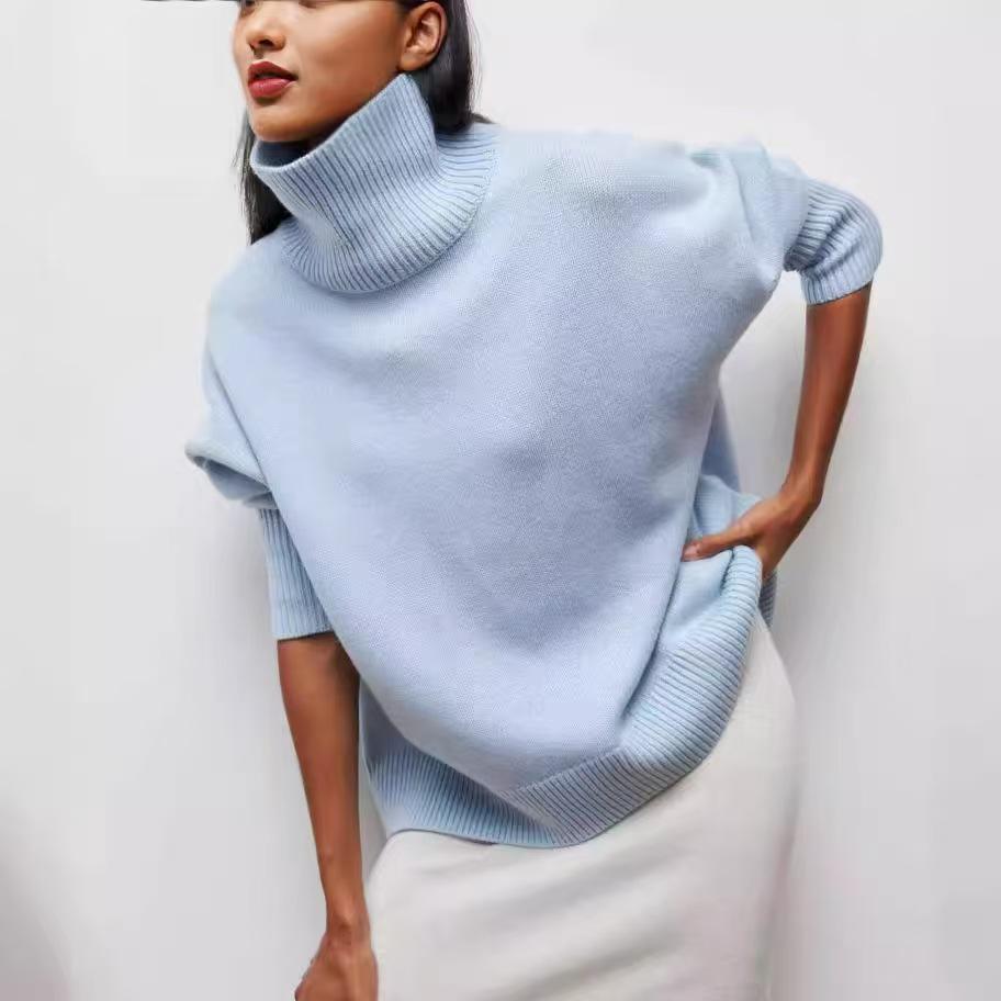 Nuevas Ideas de productos, ropa de Color sólido, cómodos suéteres de moda para mujer, suéter cálido antiarrugas de cuello alto