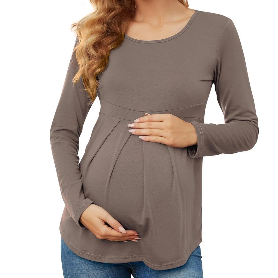 Nuevo producto camiseta de maternidad otoño manga larga ropa de enfermería camisa de maternidad transpirable Color verde sólido tarifa al por mayor