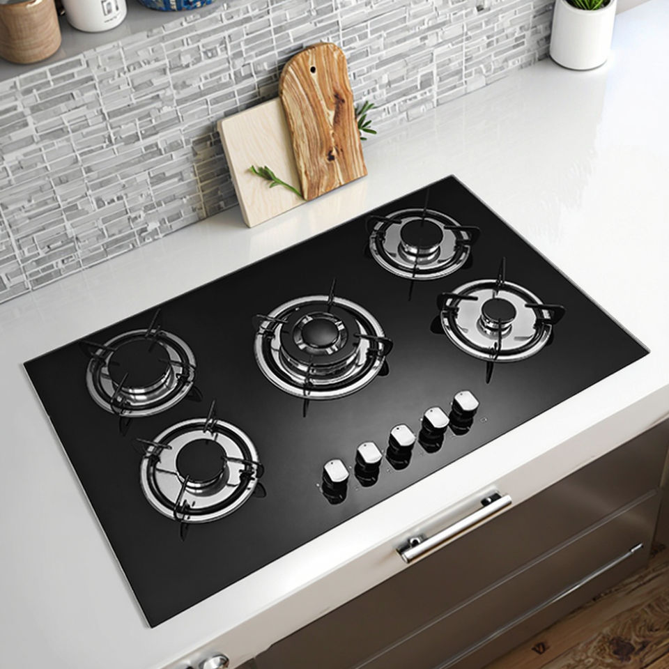 Nuevo producto — encimera multi-cocina de alta calidad con 5 quemadores, placa de gas empotrable con vidrio templado