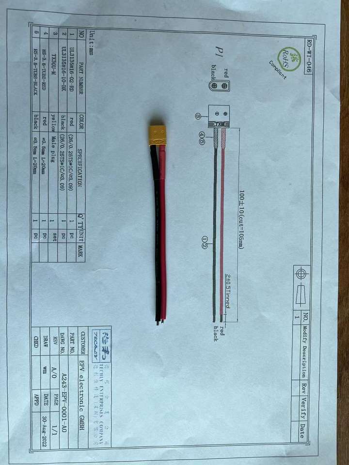 Nombre del producto::Asamblea de cable hembra-varón del conector de XT30 DC