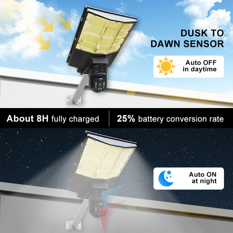 Nuevos productos Cámara inalámbrica de luz de calle solar de 2MP PTZ 4G Wifi CCTV Cámara de red de lentes múltiples con lámpara solar