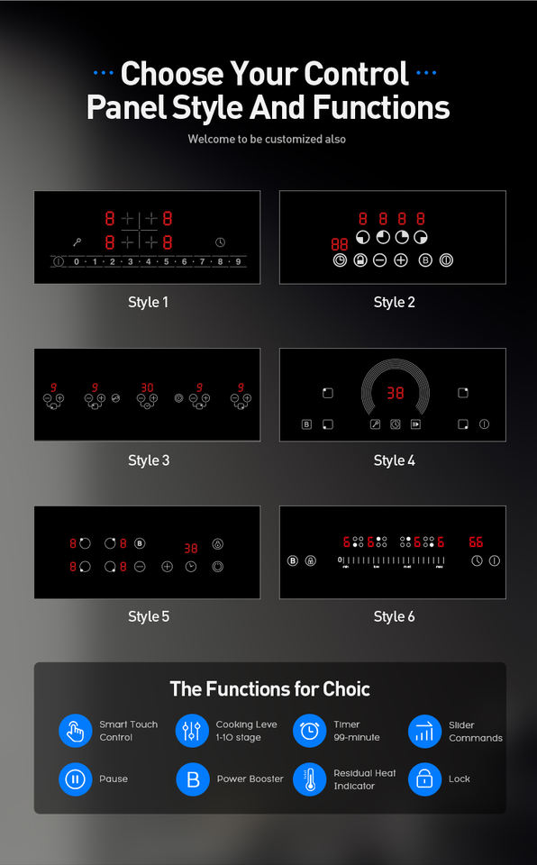 Guisado de sopa, Agitar-volar, Limpiar a vapor, Cocina de gachas de avena, Fritura salteada, Guisado de leche, Ebullición de agua, Freír, Ajuste de la temperatura, Guisado a fuego medio, Intense fuegoFunción