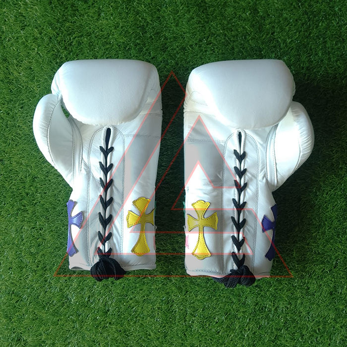 Nuevos Guantes de Boxeo Profesionales Winning Pro Fight de Color Blanco, Guantes de Boxeo Personalizados con Diseño Chrome Heart, Hechos con Cuero Genuino