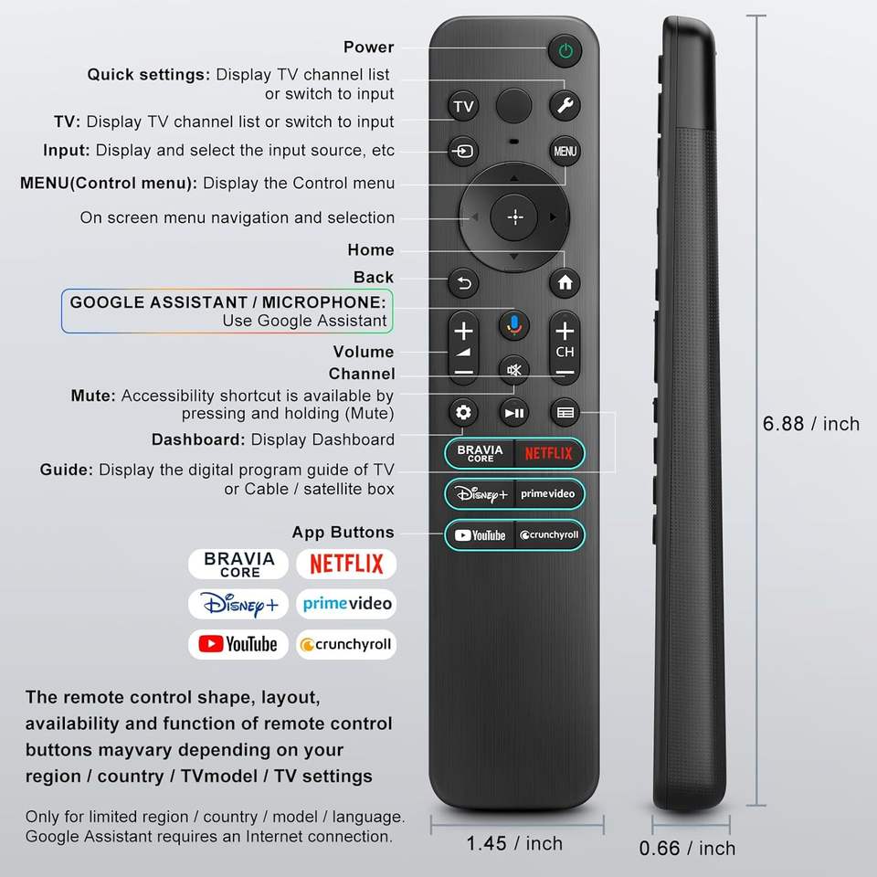 Nuevo Control Remoto por Voz RMF-TX920U Compatible con Todos los Televisores Sony Bravia 4K Ultra HD LED OLED Serie K43S20M2 K-43S20M2