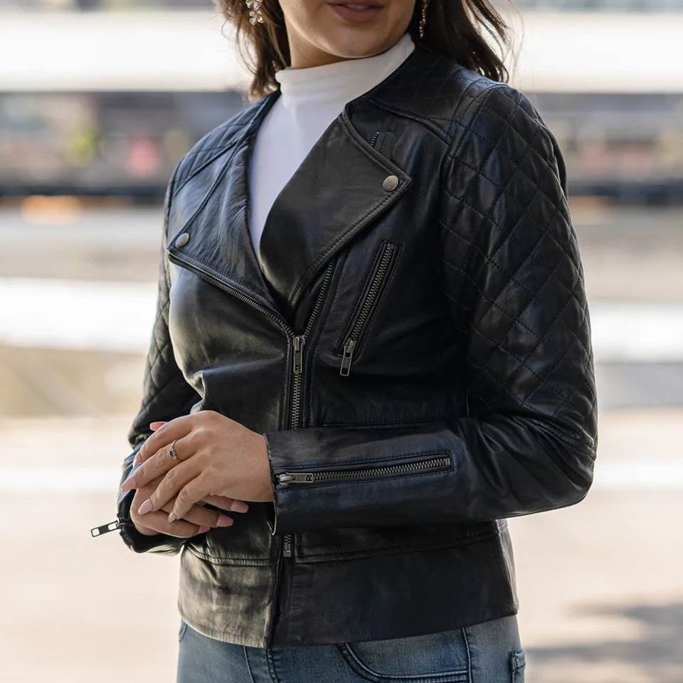 Nueva Chaqueta Bomber de Cuero para Mujer, Estilo Vintage, con Cierre Negro y Logotipo Personalizado RTS, Transpirable, con Cuello Alto, para Invierno