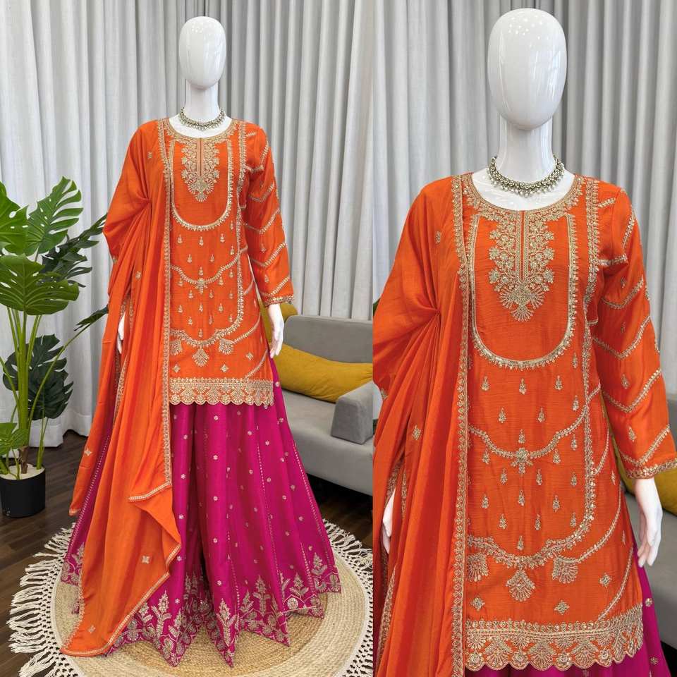 Nueva Colección Lista para Usar con Hilo y Lentejuelas, Top de Seda Chinon con Pantalones Palazzo y Dupatta