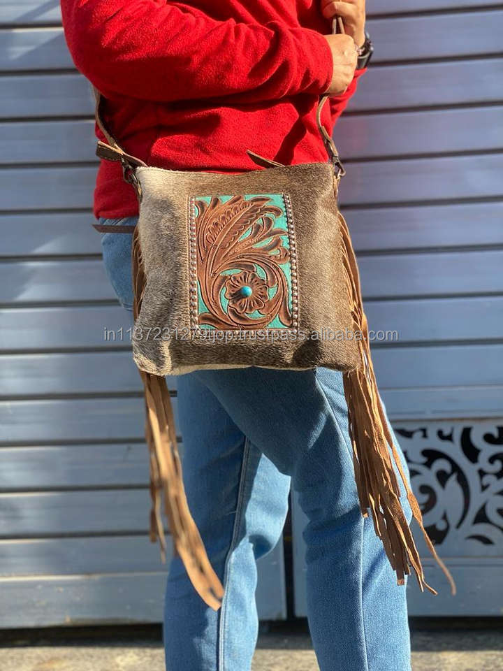 Nombre del producto:Cuero de vaca mano Tooled bolsos de las mujeres