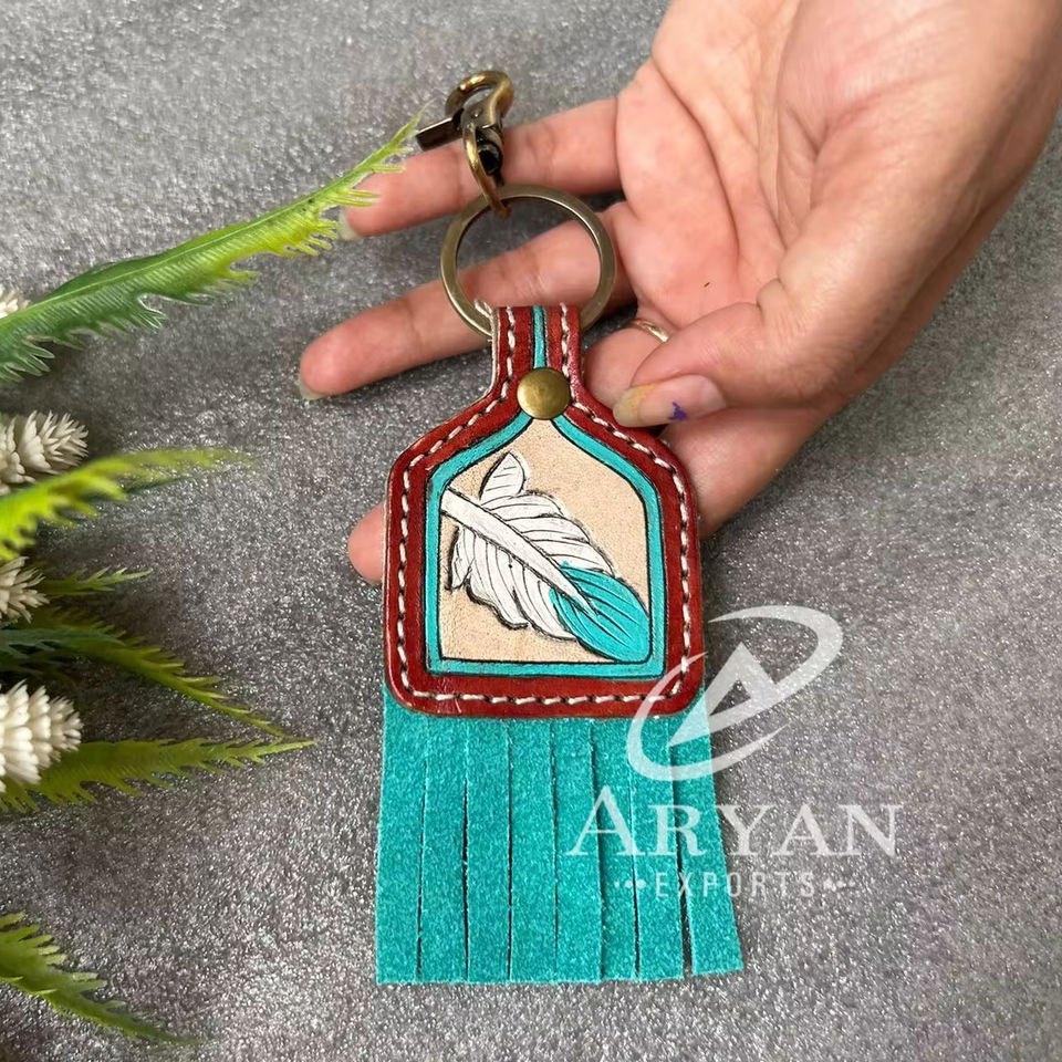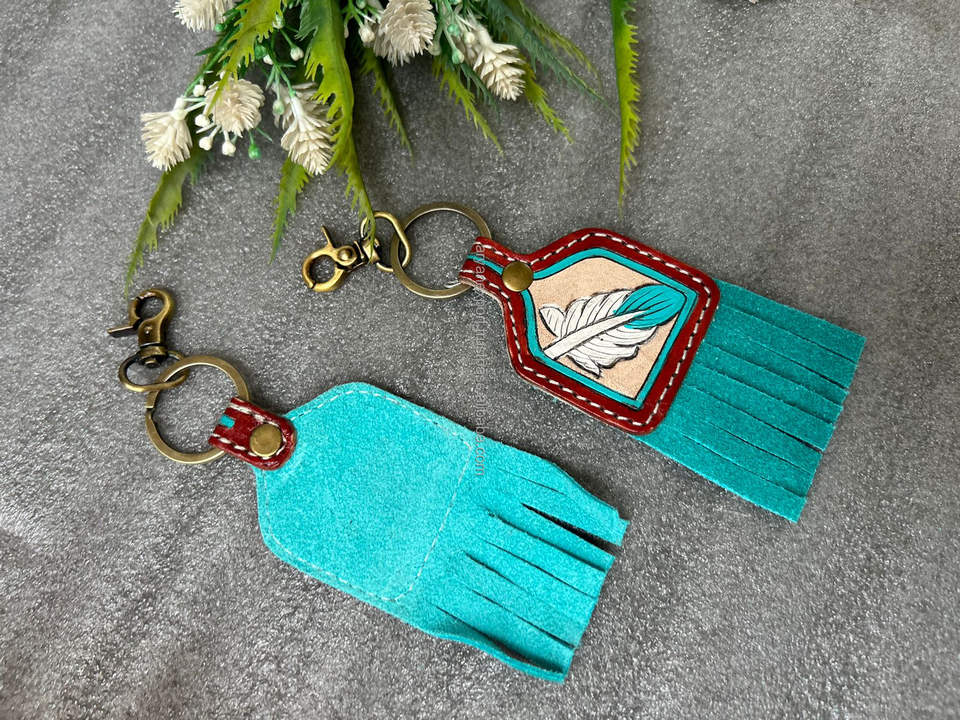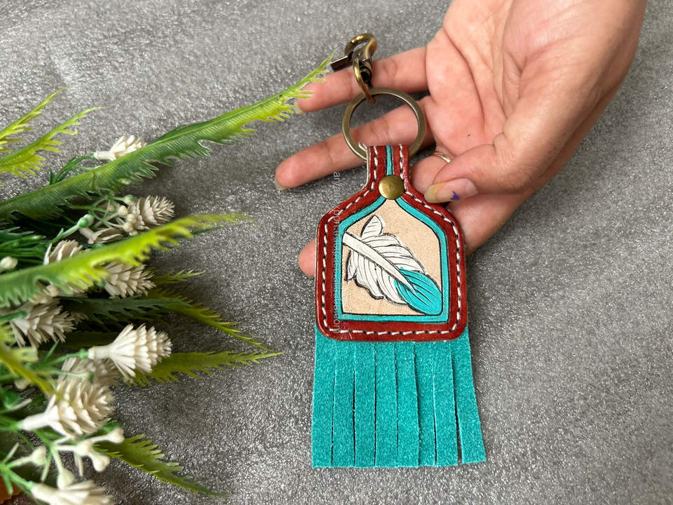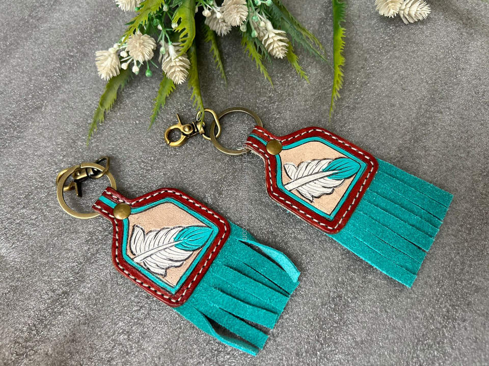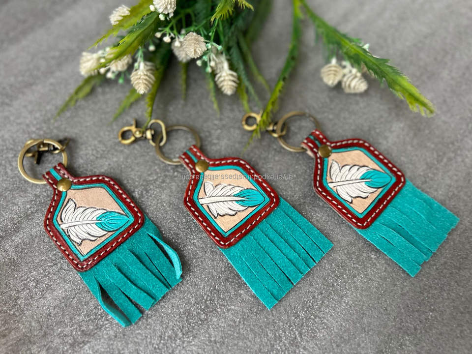 Nuevos llaveros de borla encantadores bonitos de cuero de Color genuino hechos a mano reales, gran oferta, llaveros turquesa modernos de estilo occidental