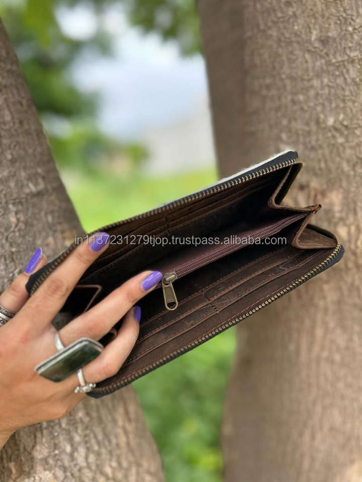 Nuevas carteras de piel auténtica hechas a mano para mujer, cartera delgada, Cartera de mano con cremallera de cuero plegable, monedero de piel de vaca auténtica, carteras