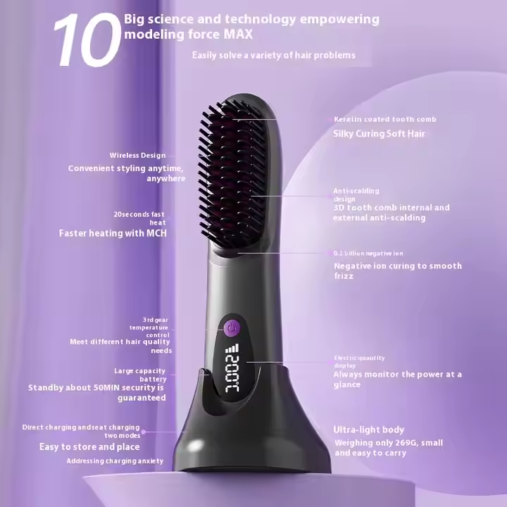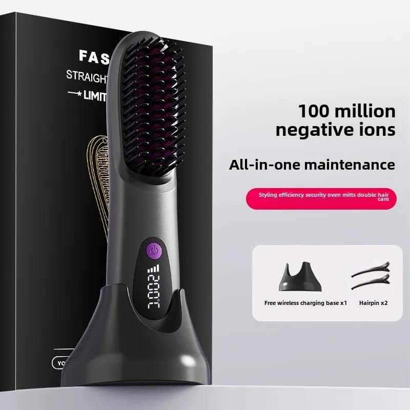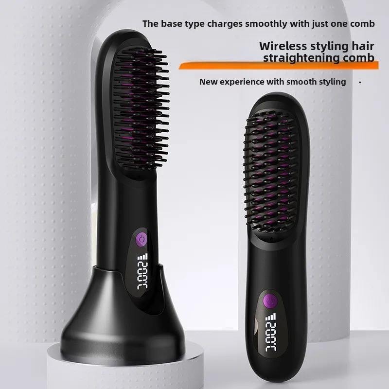 Nuevo Cepillo Alisador Recargable con Base LCD - Cepillo Térmico Portátil con Iones Negativos, Cepillo para Alisar el Cabello sin Daños