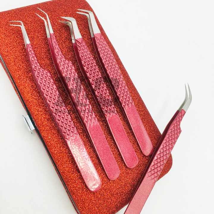 Pinzas Profesionales de Acero Inoxidable para Pestañas, Color Rojo, con Logotipo Personalizado, Punta Afilada y Dientes Suaves