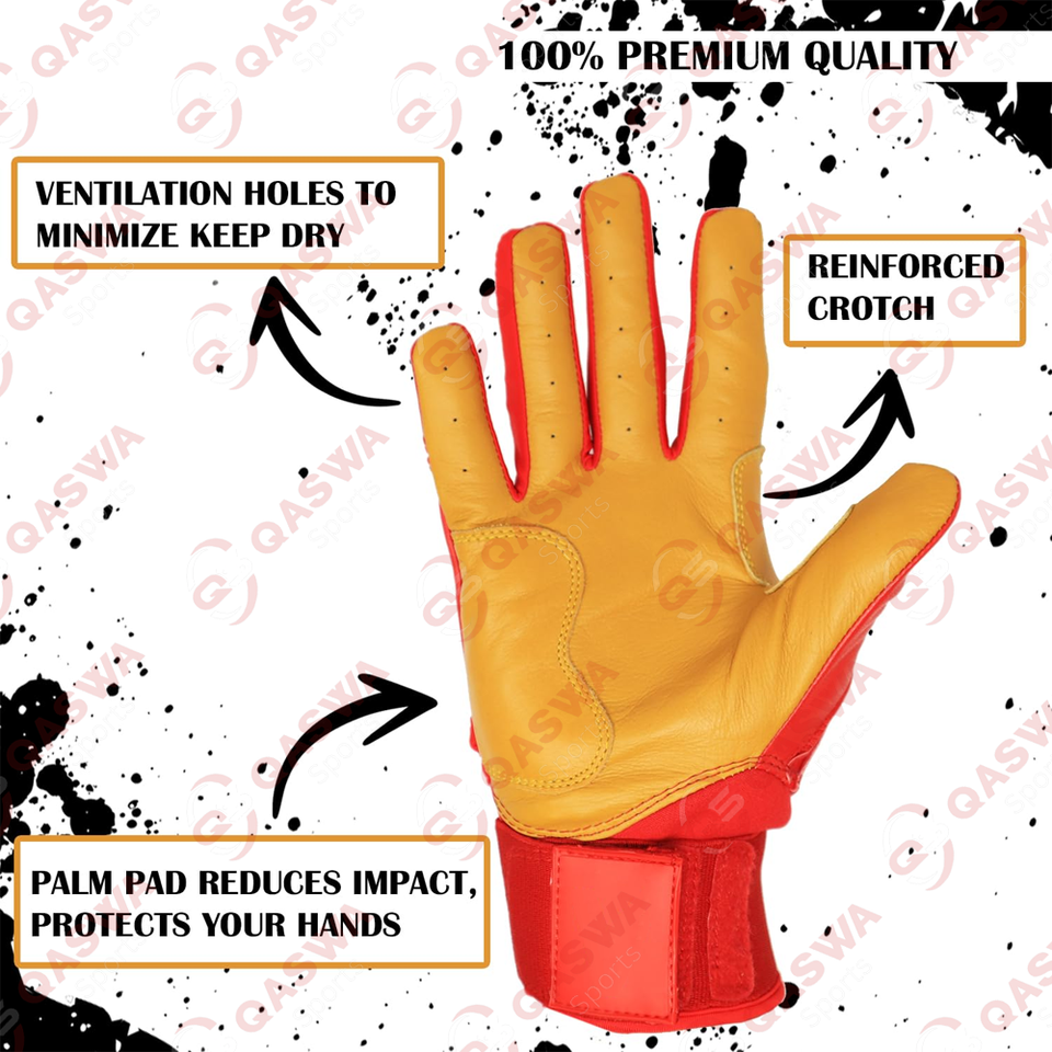 Nuevos guantes de bateo combinados rojos y amarillos con diseño de puño largo para jugadores de béisbol y softbol