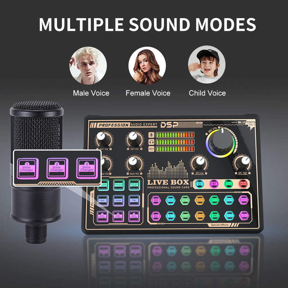 Nuevo lanzamiento mejor profesional Live USB Stream tarjeta de sonido mezclador reducción de ruido tarjeta de sonido para PC teléfono tableta