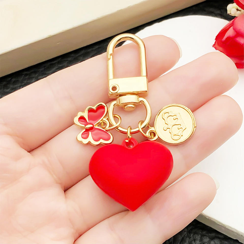 Nuevo Llavero de Resina Rojo 3D con Forma de Corazón, Mariposa, Placa de Corona Dorada KC, Moderno, Ecológico, Duradero, Encanto Dulce, Accesorios para Bolsos