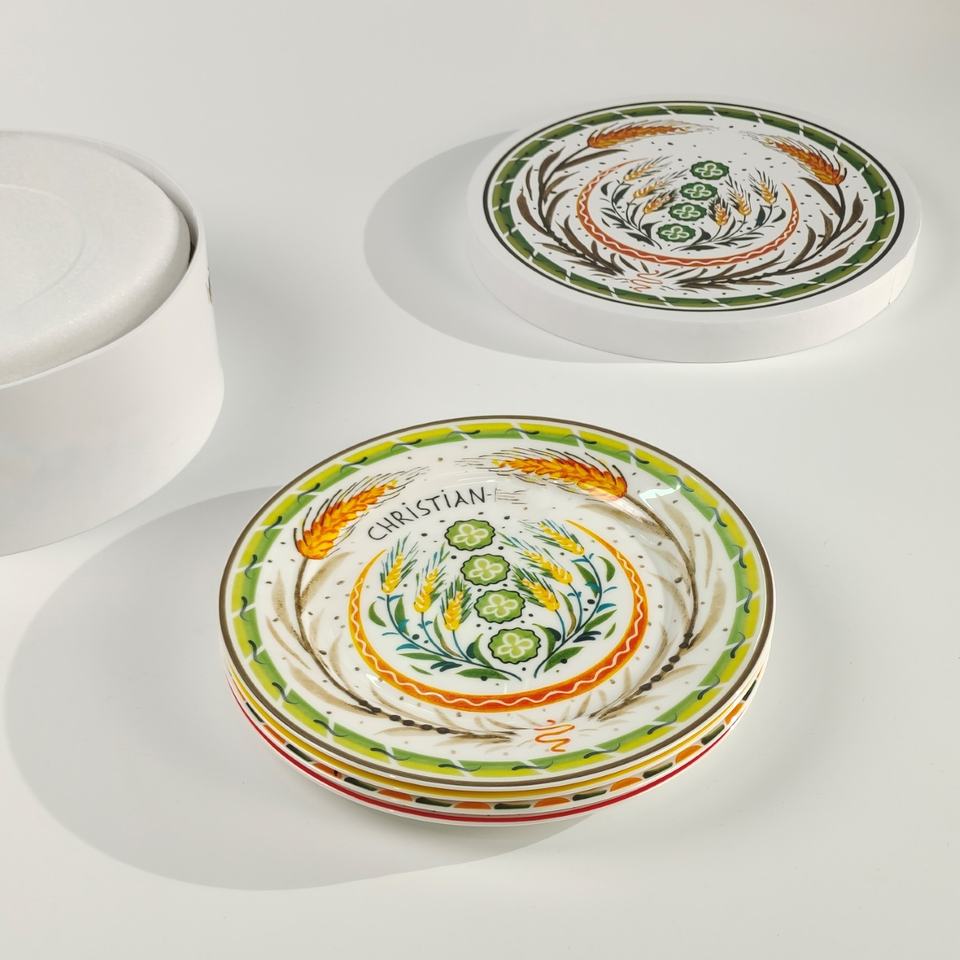 Nuevo Juego de Platos de Cerámica Retro de la Serie Primavera Temprana, Juego de 4 Platos para Vegetales, Caja de Regalo, Platos de Alta Gama para Comida Occidental