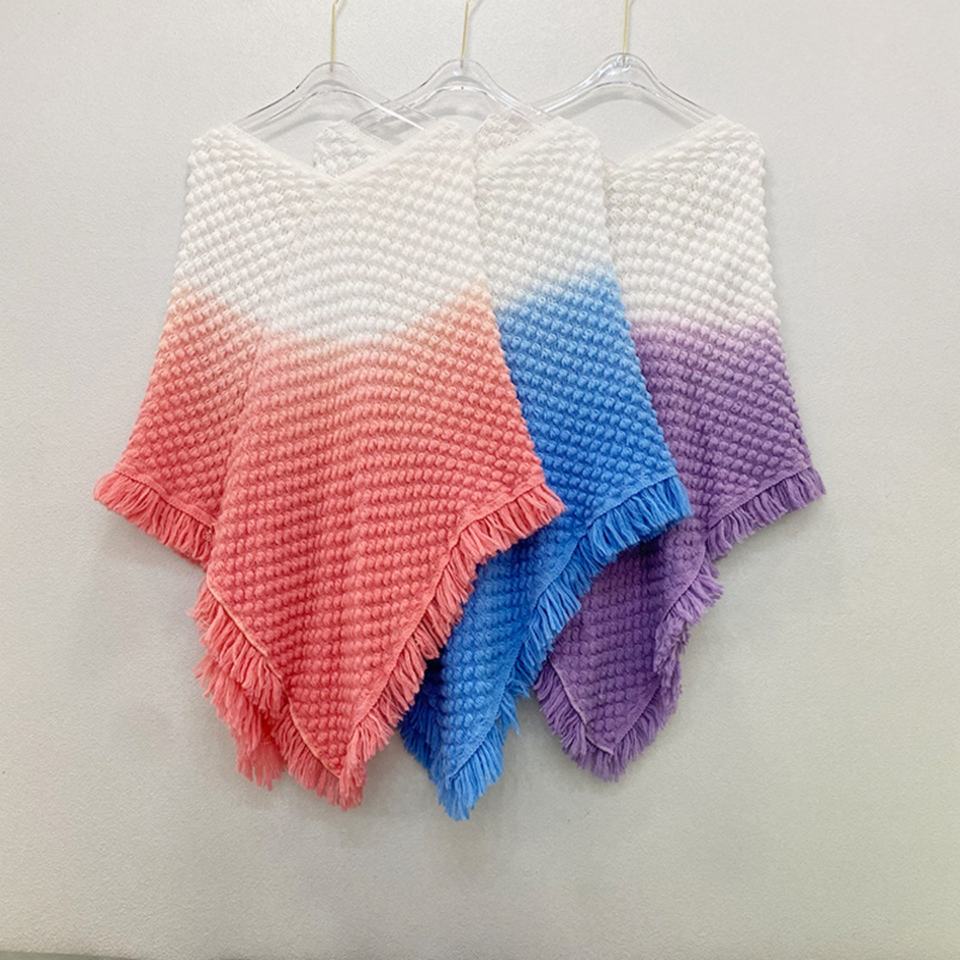 Nuevo Chal de Estilo Étnico Retro con Degradado de Color, Estampado a Cuadros, Tejido, Tipo Capa para Mujer, para Viajes, Invierno