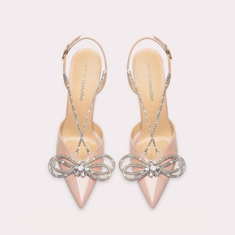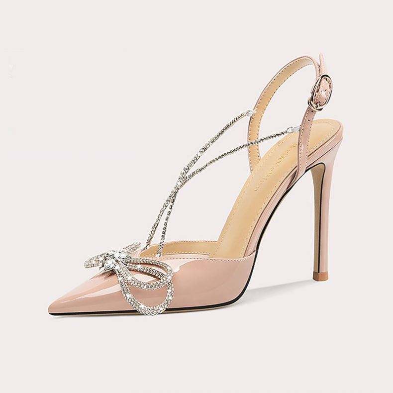 Nuevas Sandalias de Tacón Fino con Lazo de Mariposa y Pedrería para Mujer, Sandalias de Tacón Alto con Lazo Rosa Nude y Diamantes