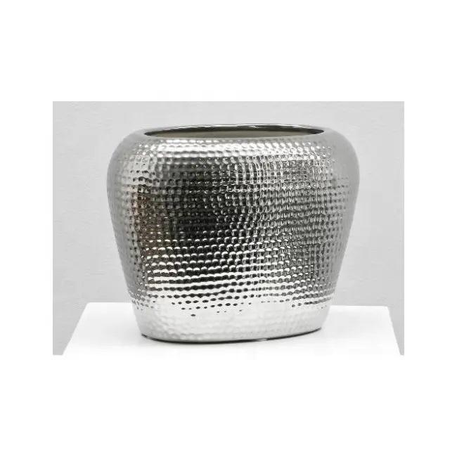 Nuevo diseño de jarrón de aluminio con textura de nervaduras, chapado en cobre fundido, ecológico, ligero, elegante, estilo vintage, maceta para interiores de alta calidad