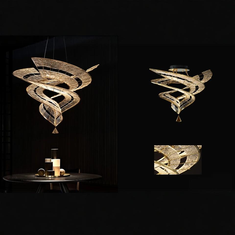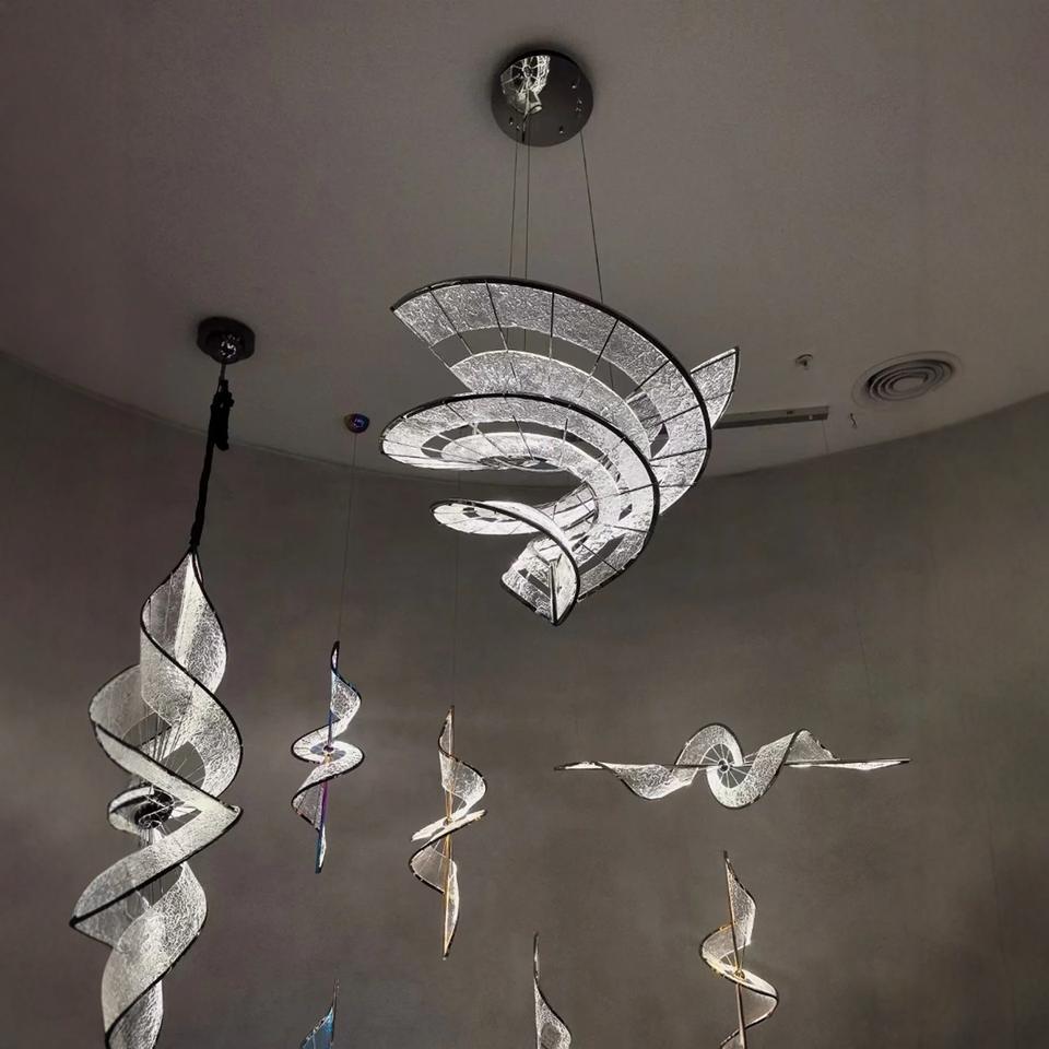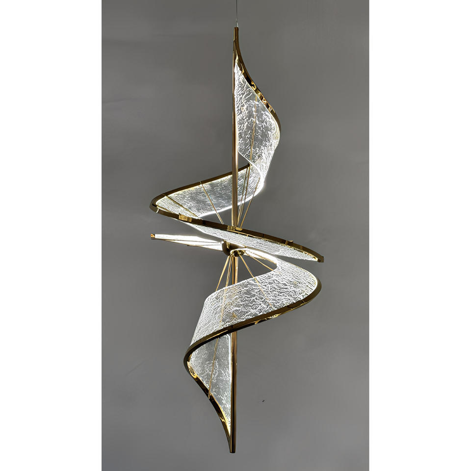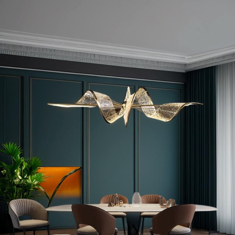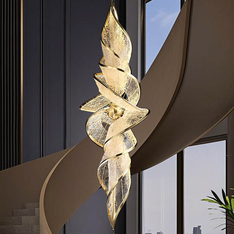 Lámpara de Araña de Diseño con Cinta Nueva para Sala de Estar de Villa, Vestíbulo de Hotel, Escalera Doble de Altura Doble, Forma Rectangular, Fuente de Alimentación de CA