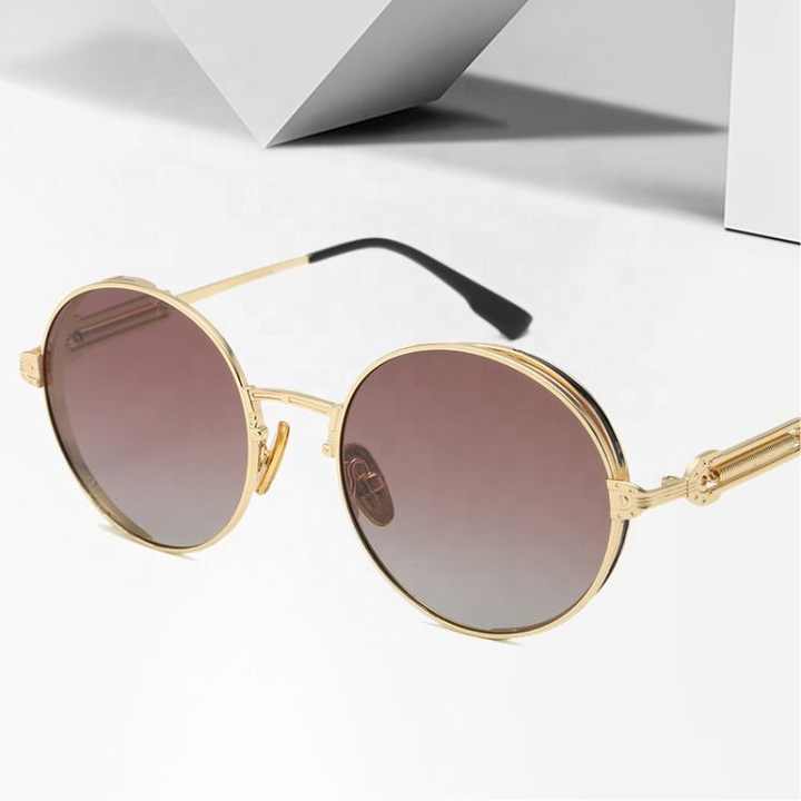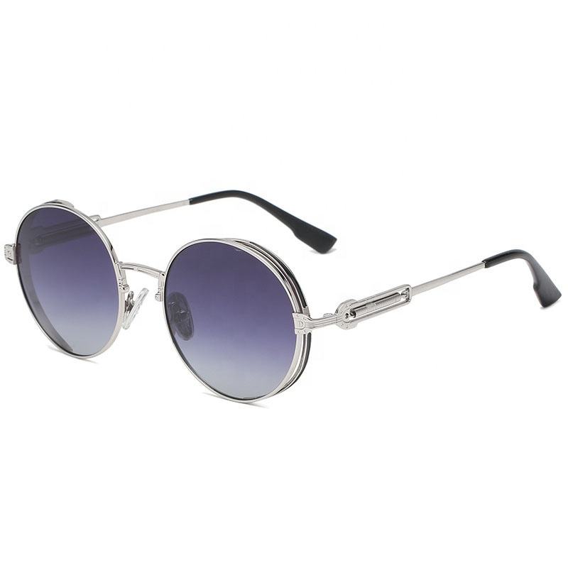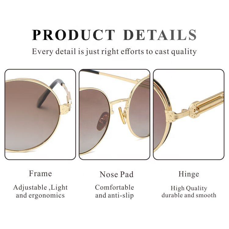 Gafas de sol de marco redondo para hombre y mujer, lentes de sol Punk redondas Vintage con patas de primavera, con logotipo de círculo de Metal, nuevas