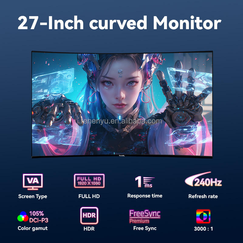 Nuevo Monitor de Computadora Curvo para Deportes Electrónicos Rovesky de 27 Pulgadas, 240 Hz, 1920x1080, Anti-luz Azul, Panel MVA Ultraclaro, 12 ms