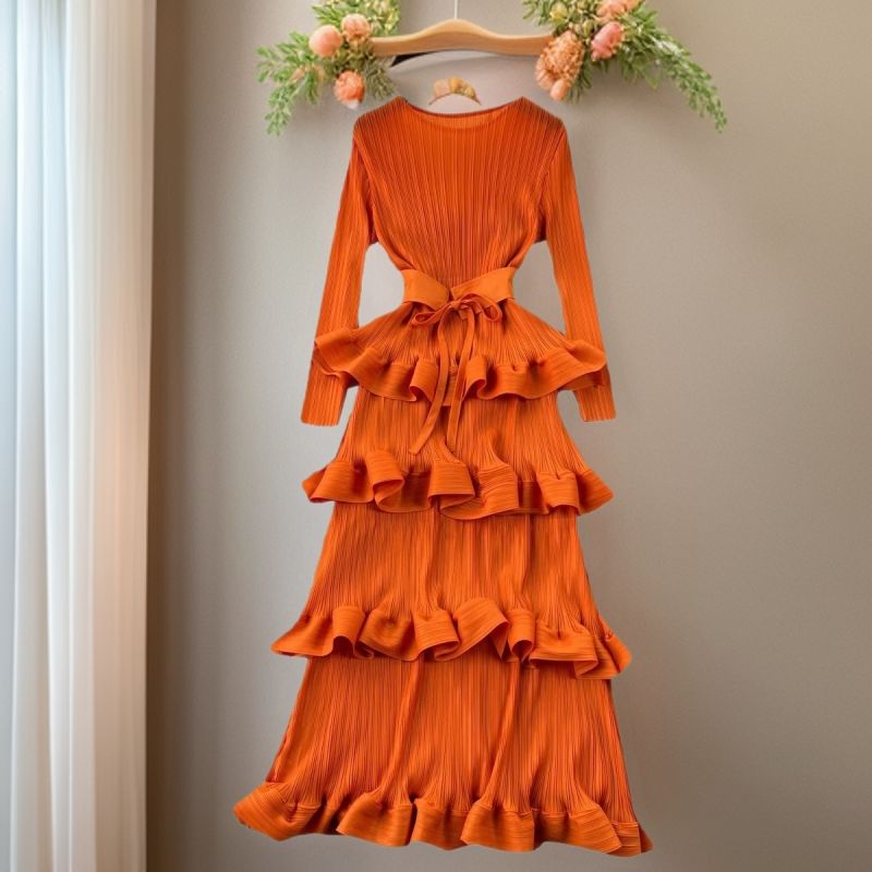 Nuevo Vestido Estilo Pastel con Volantes - Vestido Largo Plisado y Ajustado para Mujer