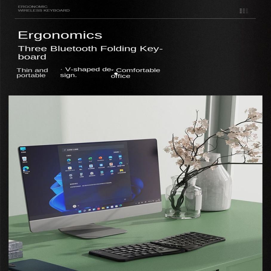 Nuevo Teclado Inalámbrico Ergonómico Plegable Ruso Árabe con USB Tipo-C Portátil para Tablet y Laptop, Compatible con Múltiples Dispositivos