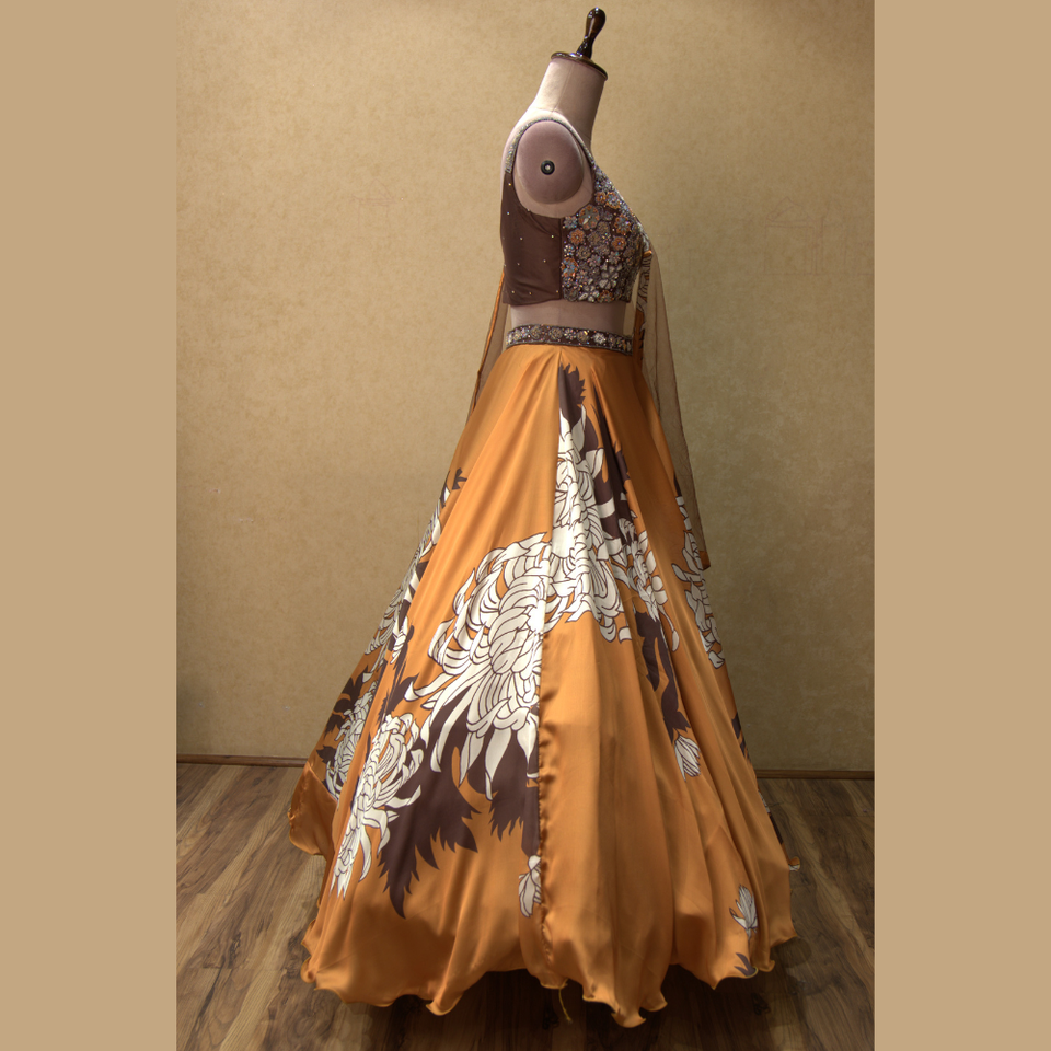 Lehenga de satén oxidado con bordado multicolor rico a precio mayorista de La India para exportar Lehenga de boda para mujer