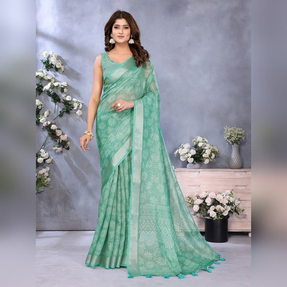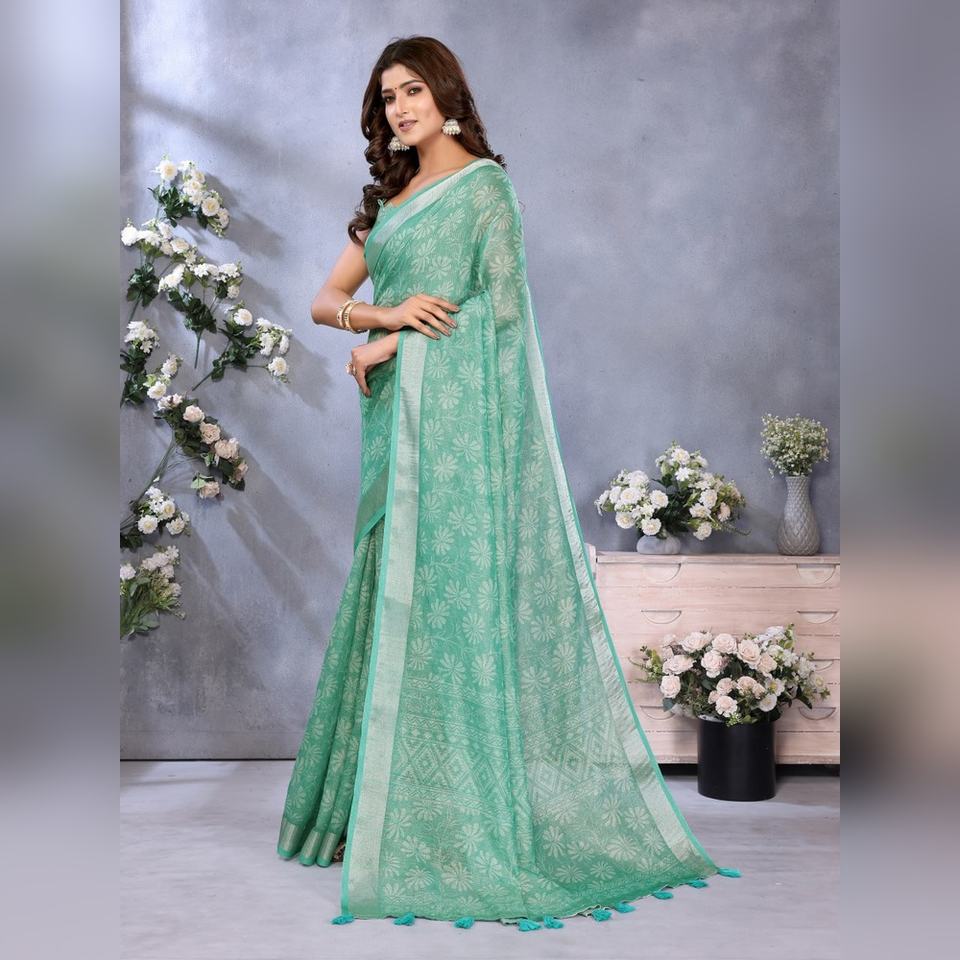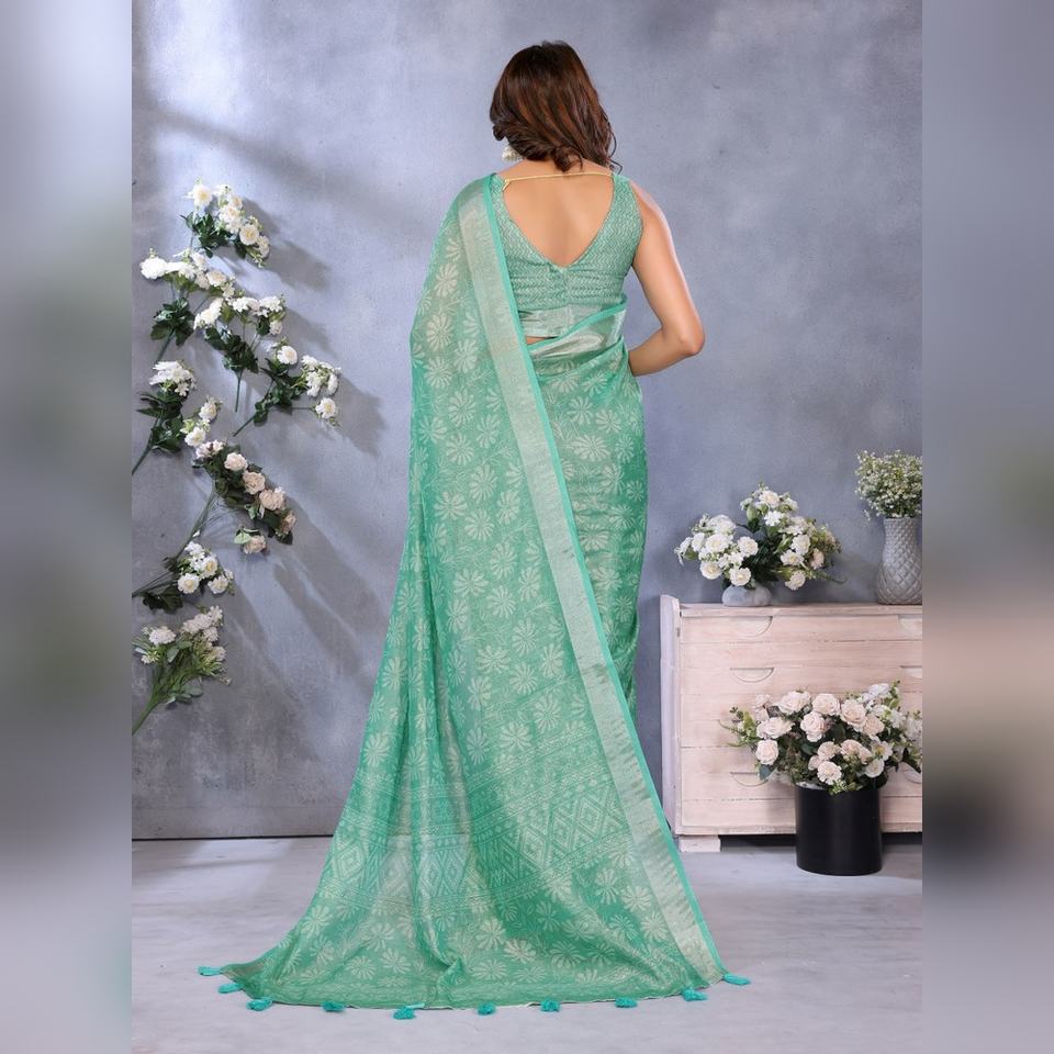 Nuevo Sari Verde Mar con Patrón Tejido GG-413, Elaborado con un Borde Delicado y Combinado, Venta al por Mayor