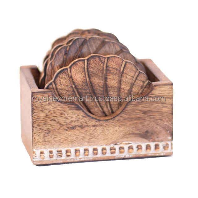 Posavasos de madera de nogal con nuevo diseño de SeaShell, alfombrilla/almohadilla, portavasos de té de madera maciza, posavasos gratis de madera personalizados de Royal Decor Mart