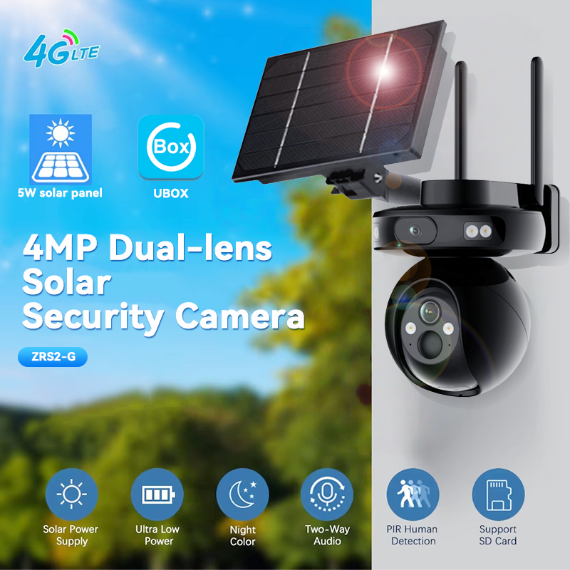 Nueva Cámara de Seguridad Inalámbrica 4G para Exteriores, con Giro e Inclinación, Energía Solar, Sensor CMOS de 4MP, Visión Nocturna en Color, Compatible con la Nube, UBOX