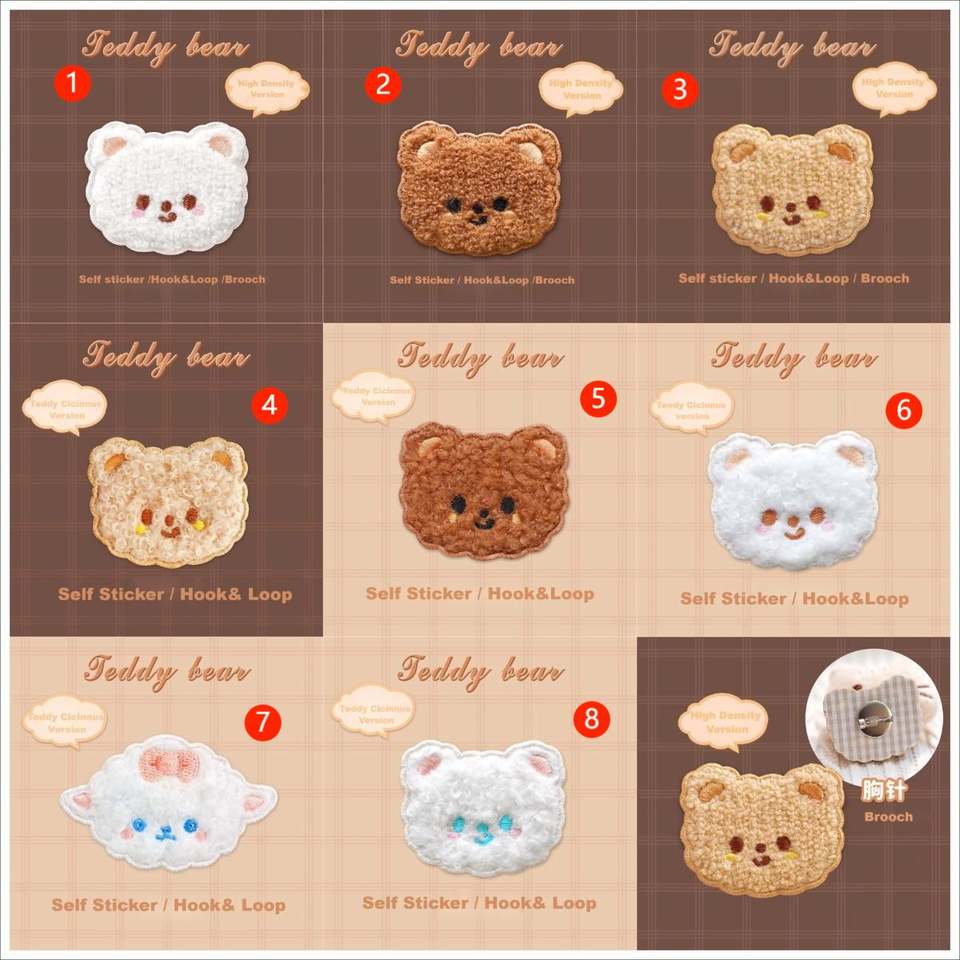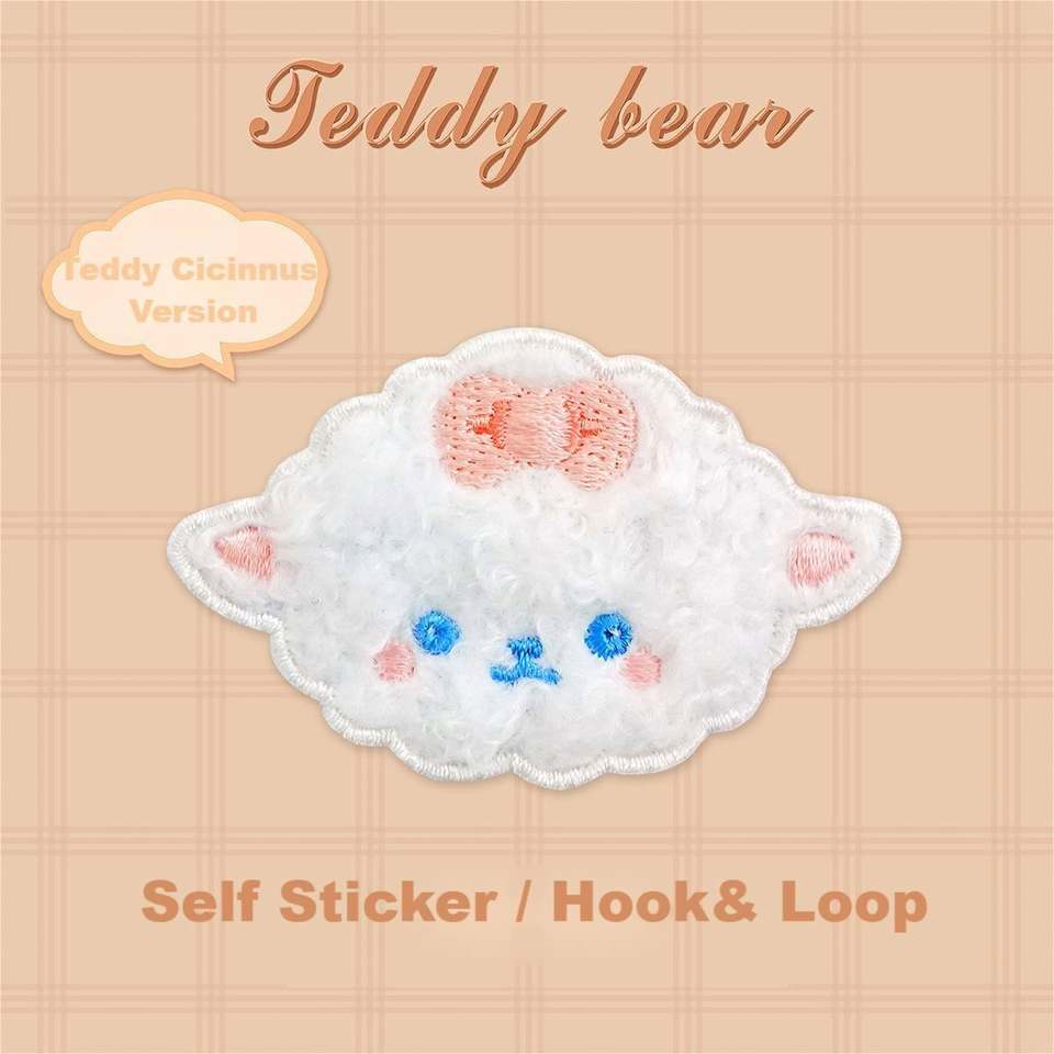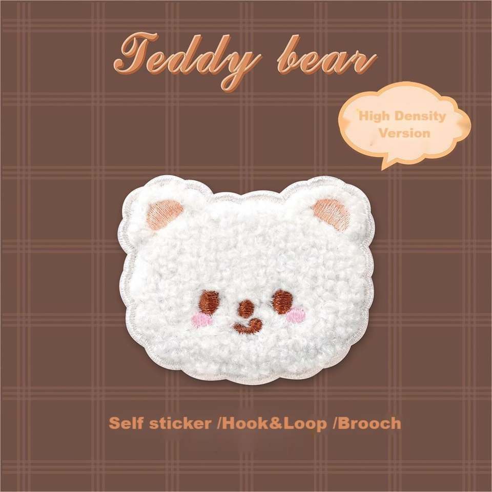 New Self Adhesive/Hook&loop Brooch Embroidery Cute Cartoon Plush Bear Sheep Patch for Decoration