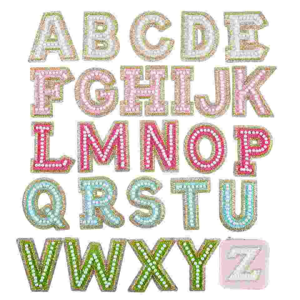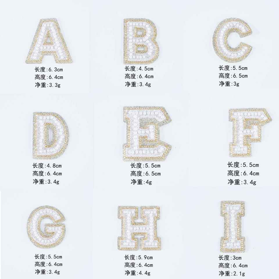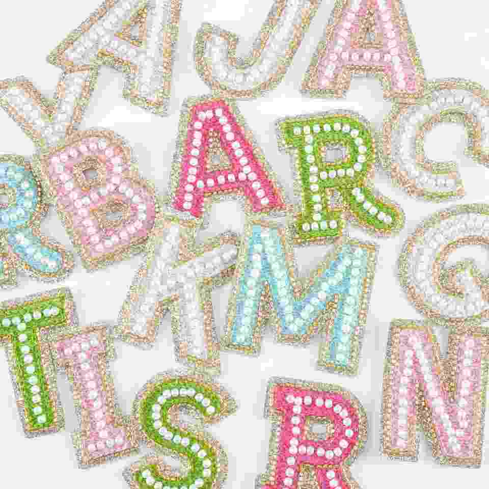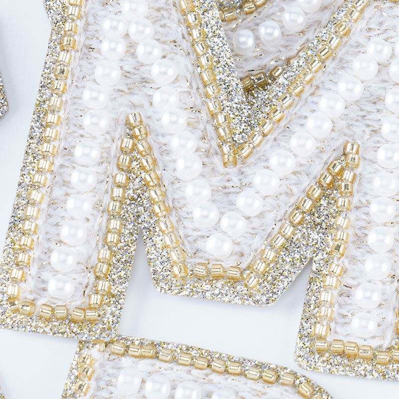 Nuevo Parche Autoadhesivo con Letras Bordadas, Perlas y Cuentas Brillantes Plateadas de 6.5CM