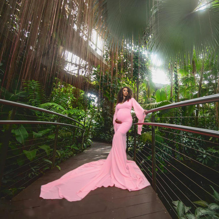 Nuevos vestidos largos sexis de sesión de fotos de maternidad para Baby Shower manga acampanada embarazo fotografía Prop lindo mujeres embarazadas Maxi vestido
