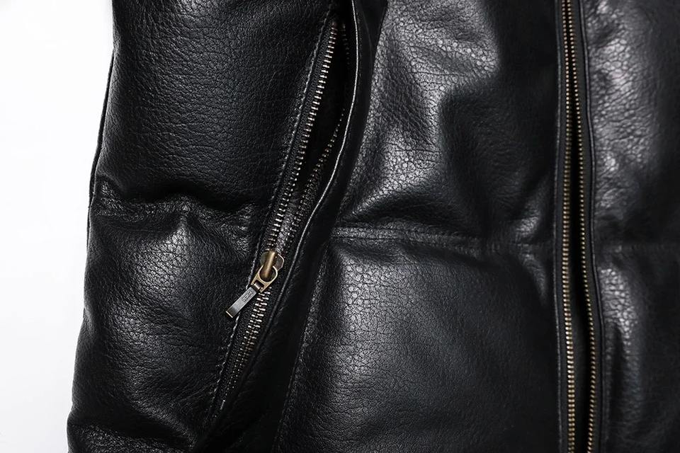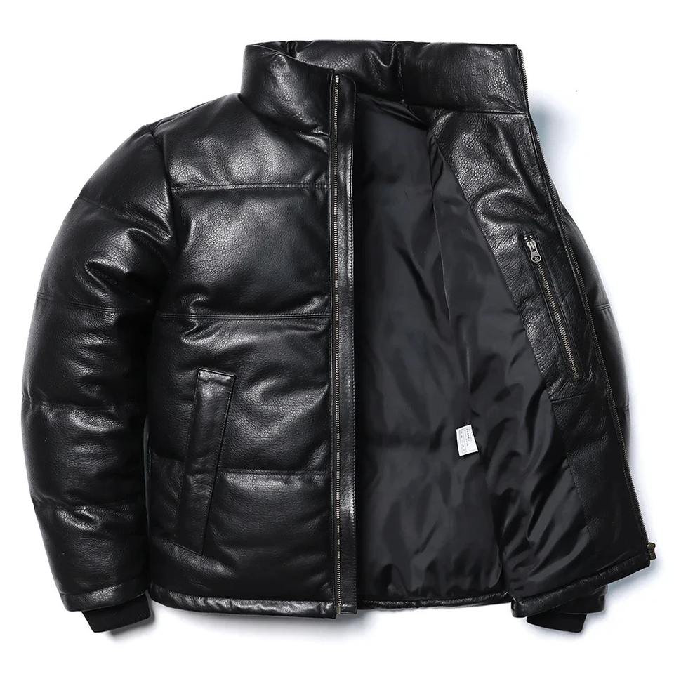Nueva chaqueta de plumón de pato blanco de cuero genuino de piel de oveja para hombre, capucha de piel de cabra, abrigo cálido, ropa gruesa de invierno, abrigos