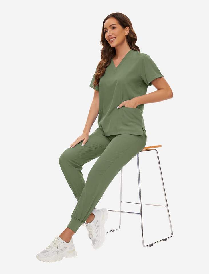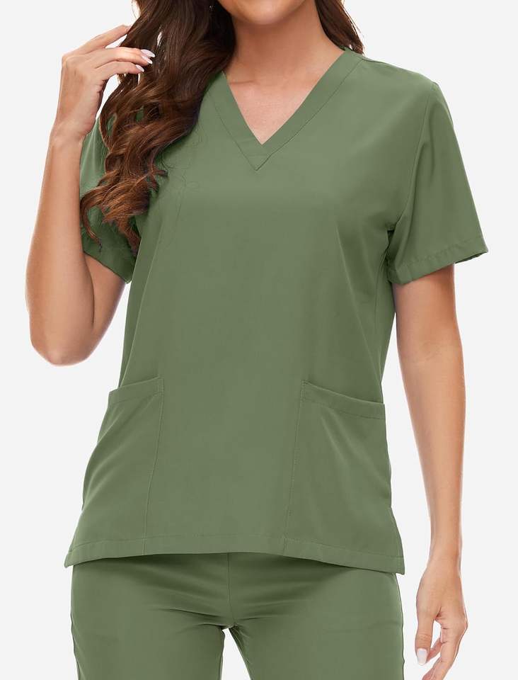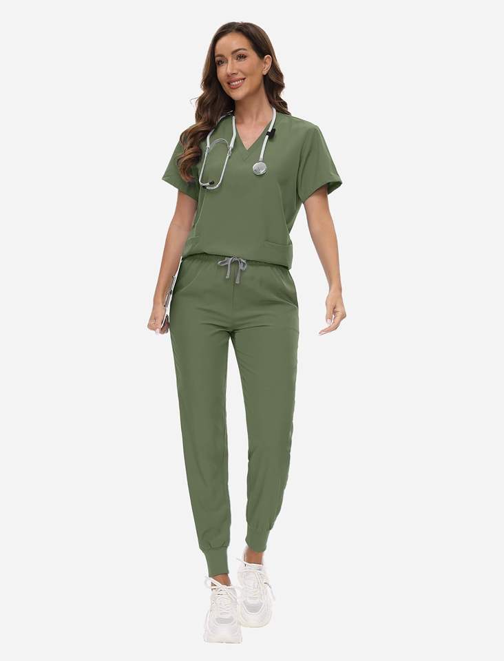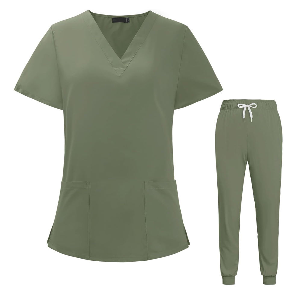 Nuevo uniforme de trabajo de manga corta con cuello en V para mujeres y hombres por cantidad a granel Nuevo diseño Traje de enfermería para mujeres