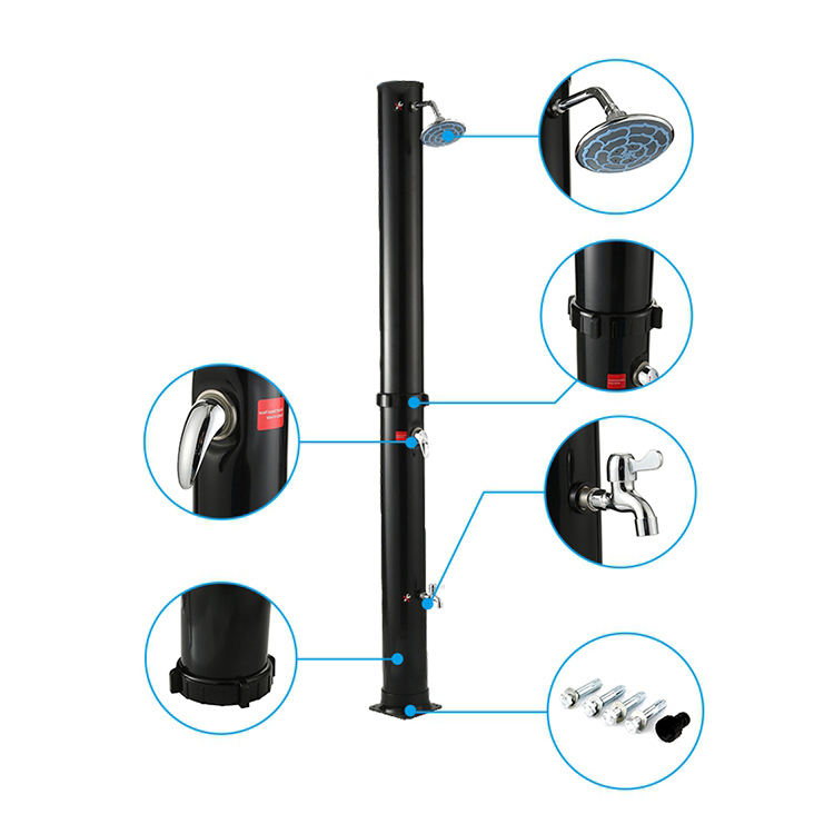 Nueva columna de ducha extensión negro al aire libre playa Durable piscina columna de ducha Solar conjunto de ducha de pie caliente y frío