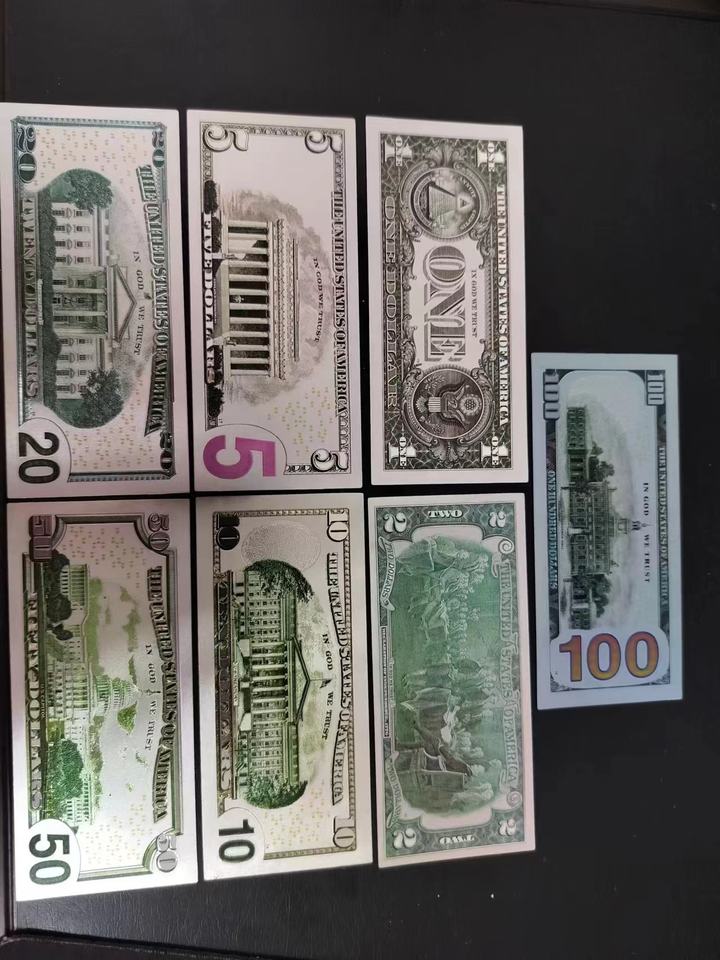 Nueva colección de billetes de euro de plata para regalo, USD 5, 10, 20, 50, 100, 200, 500, 1000, billetes de dólar chapados en plata, resistentes al agua, estilo anime