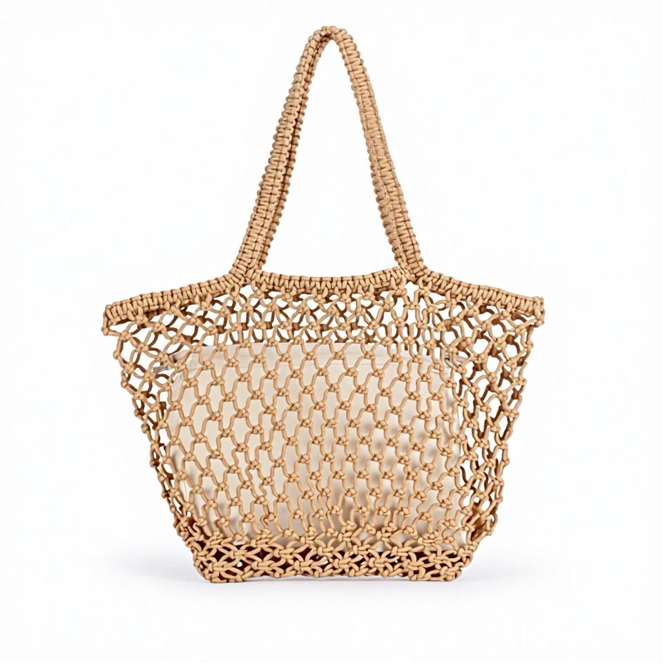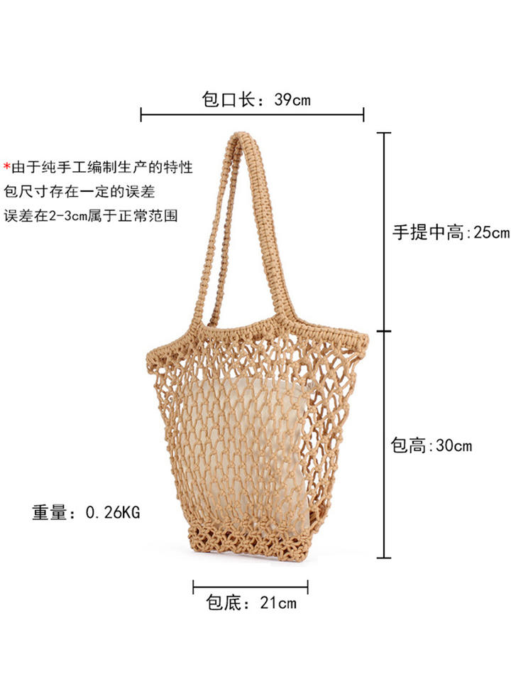 Nuevo Bolso de Playa para Mujer, Tejido a Mano, con Dos Correas y Cierre de Cremallera, de Lona, para Vacaciones, Uso Diario, con Bolsillo de Red de Cuerda de Algodón, Tanjing