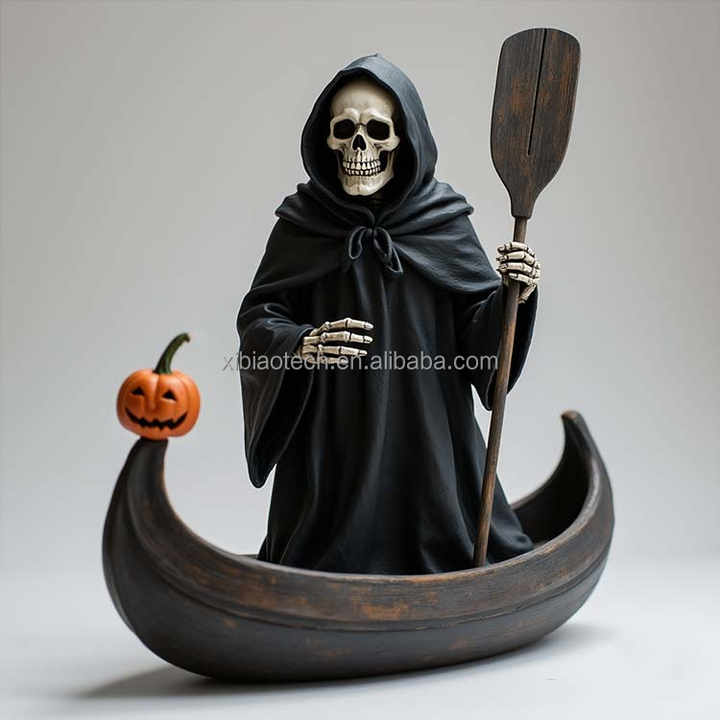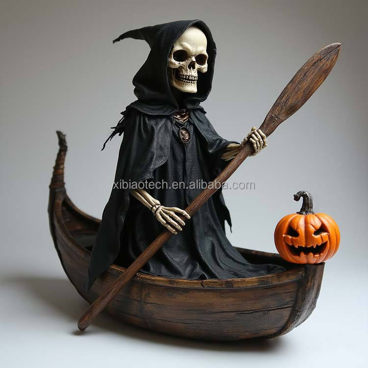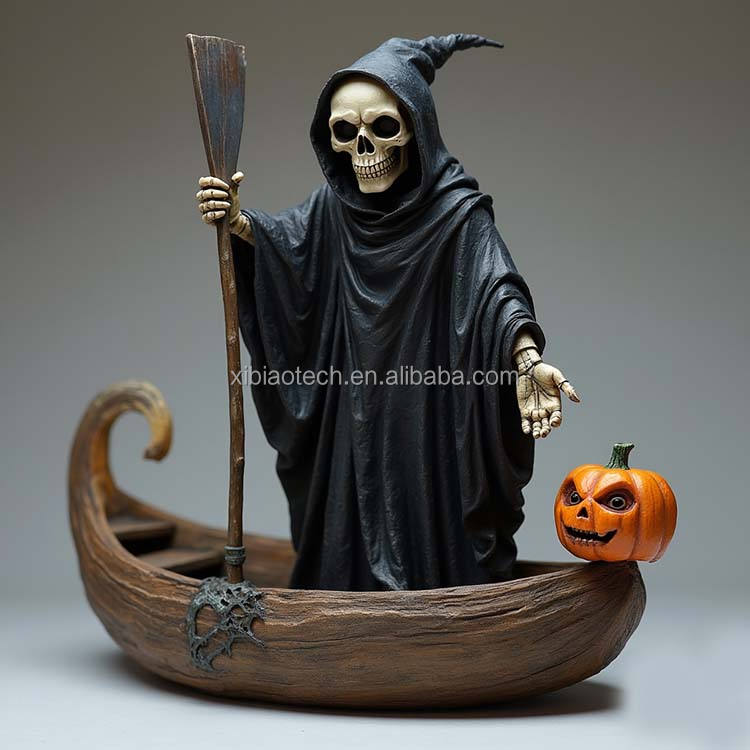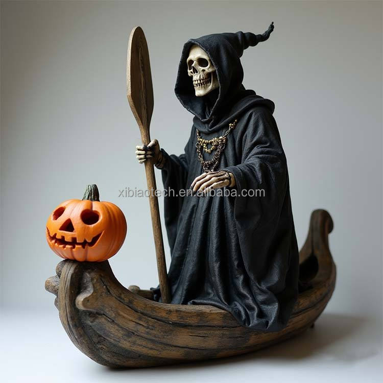 Nuevas Estatuas Realistas de Halloween de Esqueletos Fantasma en Barco de Calabaza, Decoraciones de Resina Creativas, Artesanías de Resina Personalizadas al por Mayor