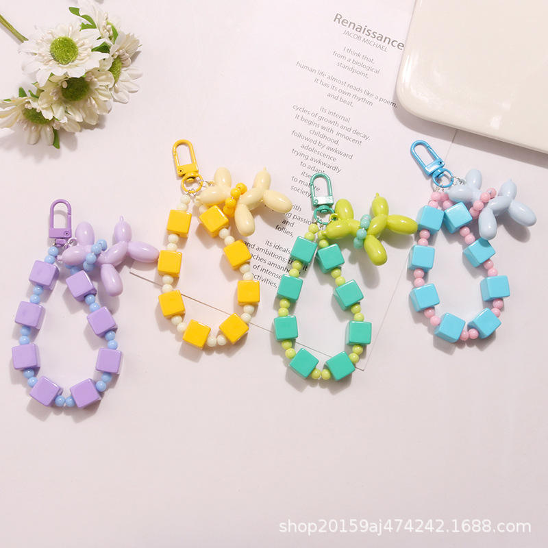 Nueva bufanda con cuentas de Color sólido, colgante de llavero de peluche de perro burbuja, accesorios de bloque coloridos, decoración de bolsa