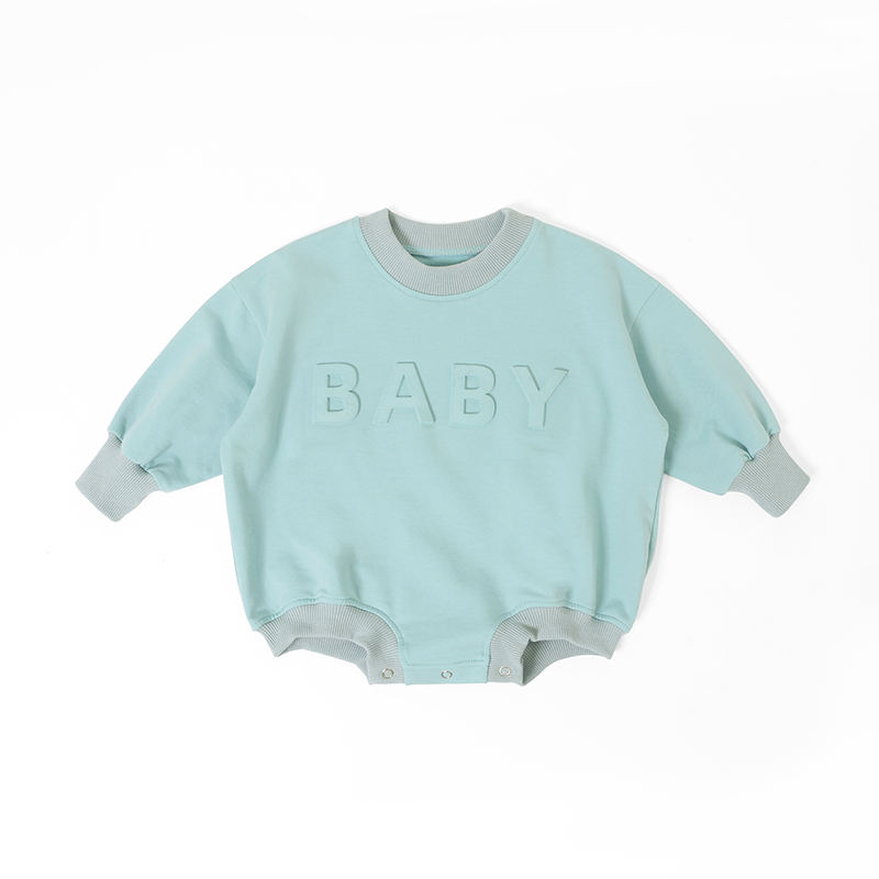 Nuevo pelele de bebé de color liso de manga larga con diseño personalizado, pelele de bebé con relieve tridimensional, pelele de algodón con cuello redondo para recién nacido